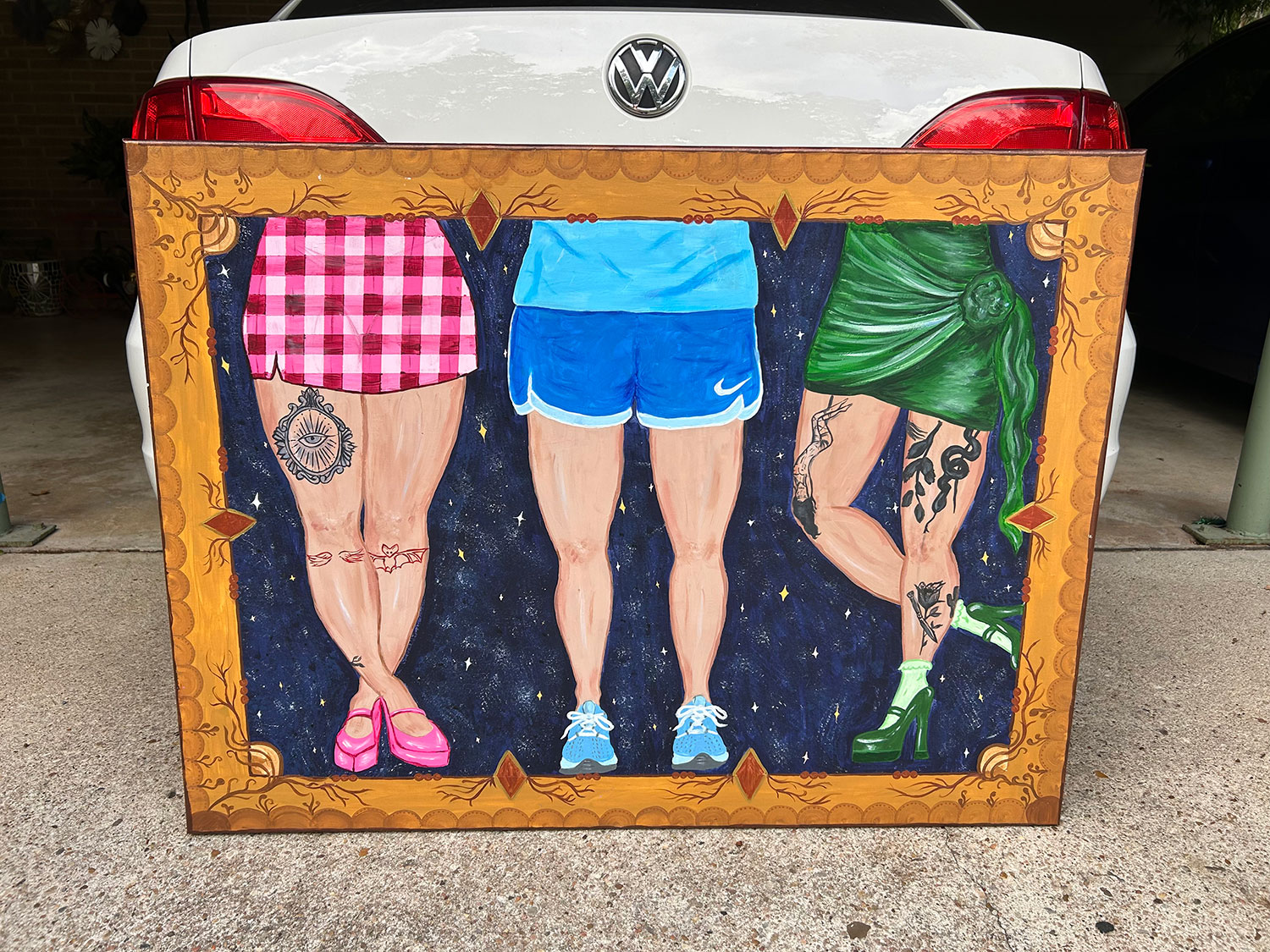 Feminine, cute, a little risqué art featuring a stained glass artist, street art, custom painted pots and purses, prints, drinks, raffle and games! Hang out and look at our art (: