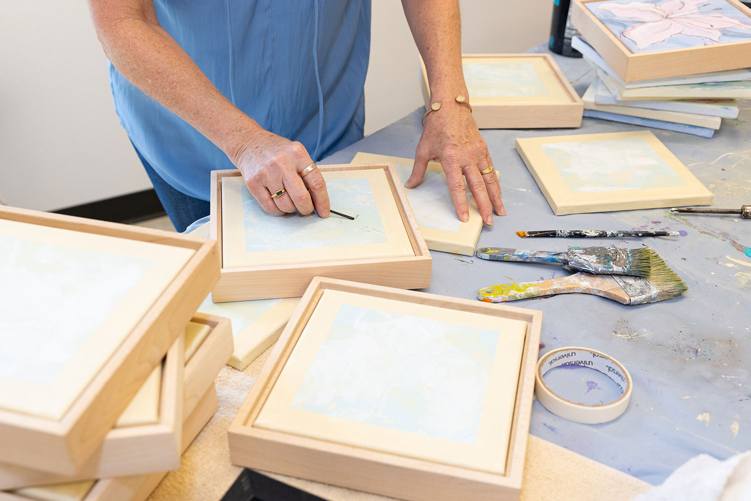 I am a contemporary abstract painter. When I create, I draw upon heart-felt memories and ordinary moments, seeking to make art that reflects a sense of peace, balance and beauty. Nature is a favorite source of inspiration for me, and my meditation practice helps me cultivate peace. This feeling has become a core inspiration for my work. Primarily working in acrylics, I begin each piece with a simple composition, layering and excavating to build depth. I seek “the light” within each painting, creating delicate contrasts between hues, tones, darkness and light.