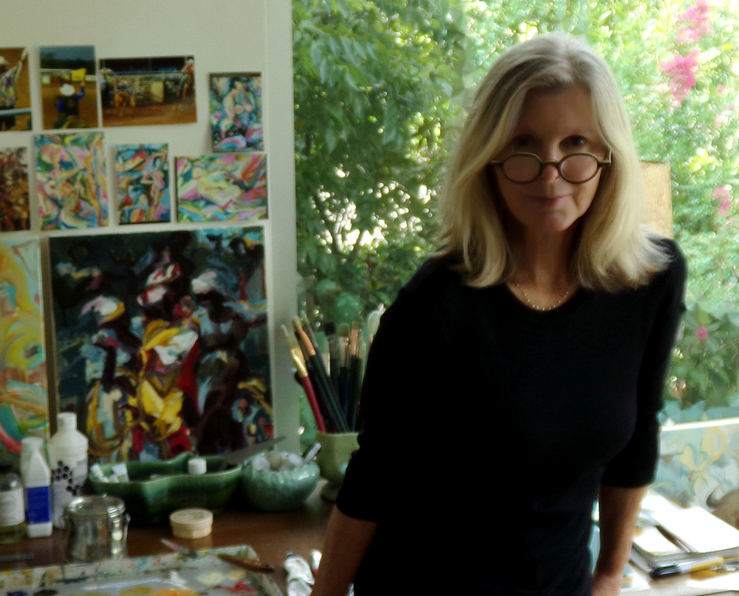 Just up the street from Mozart’s and the Walsh Boat Landing, April Garner’s front courtyard studio offers a place to relax for a moment. Large scale paintings of herons, peacocks, hares and wolves evoke their inspirational settings of our lakes, parks and wild spaces. Enjoy a drink and see the new mini 12x12s capturing silhouettes of the NY Central Park coyotes, “Romeo and Juliet.”