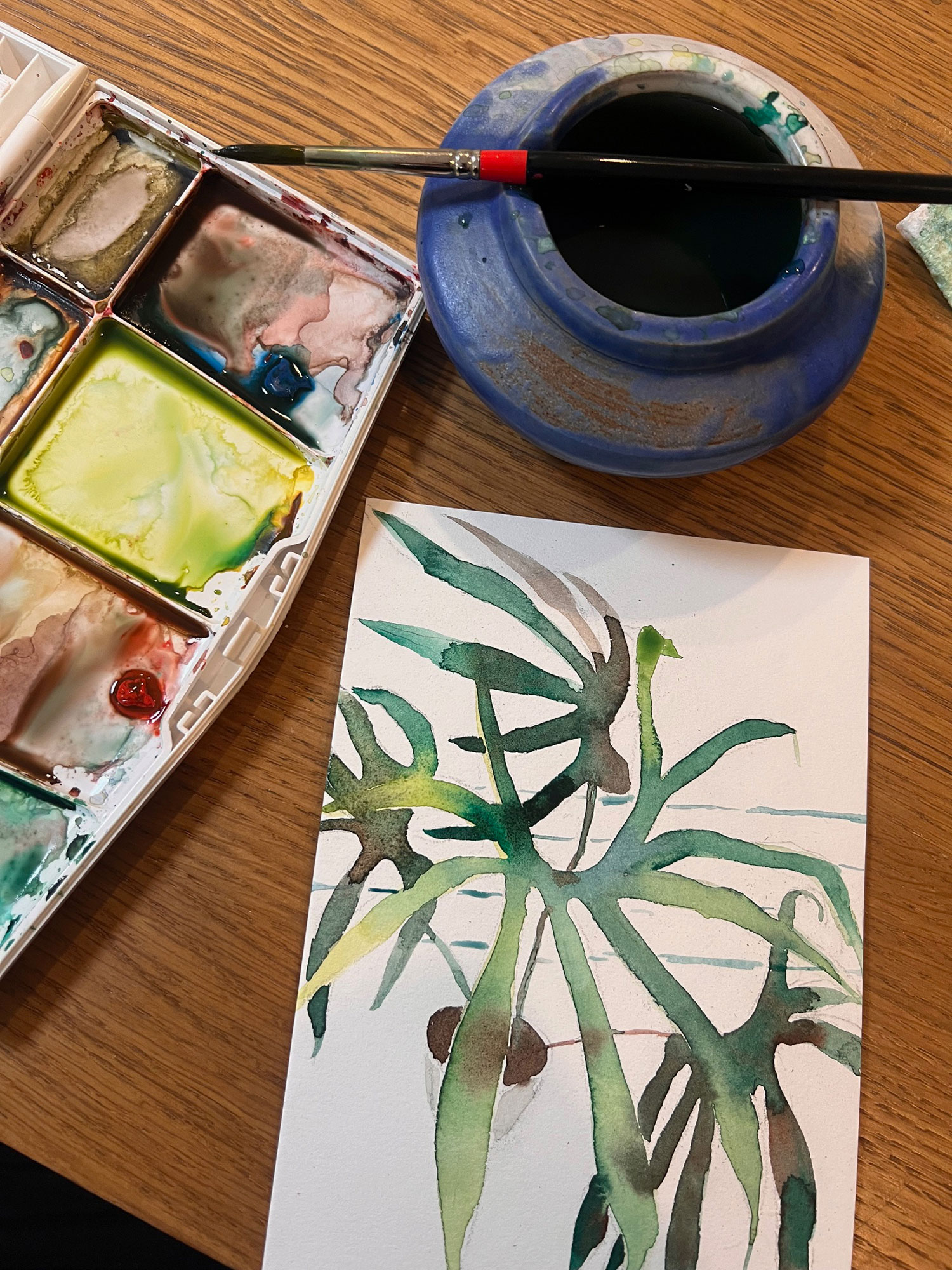 I will open my casita studio for all to see. All of my maker space will be open and I will be available to chat and answer questions about my work. I’m cultivating a very friendly neighborhood vibe, with drinks and snacks as well as an area to shop my paintings and ceramics. Joanne Grimonprez, jewelry artist, will be showing her jewelry as well.