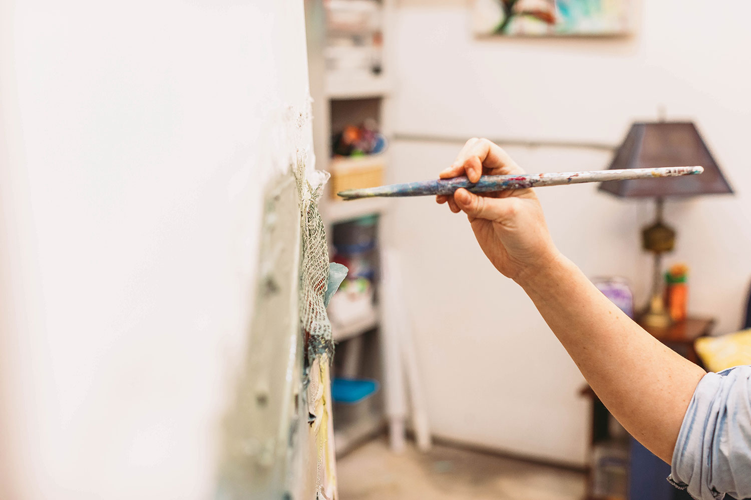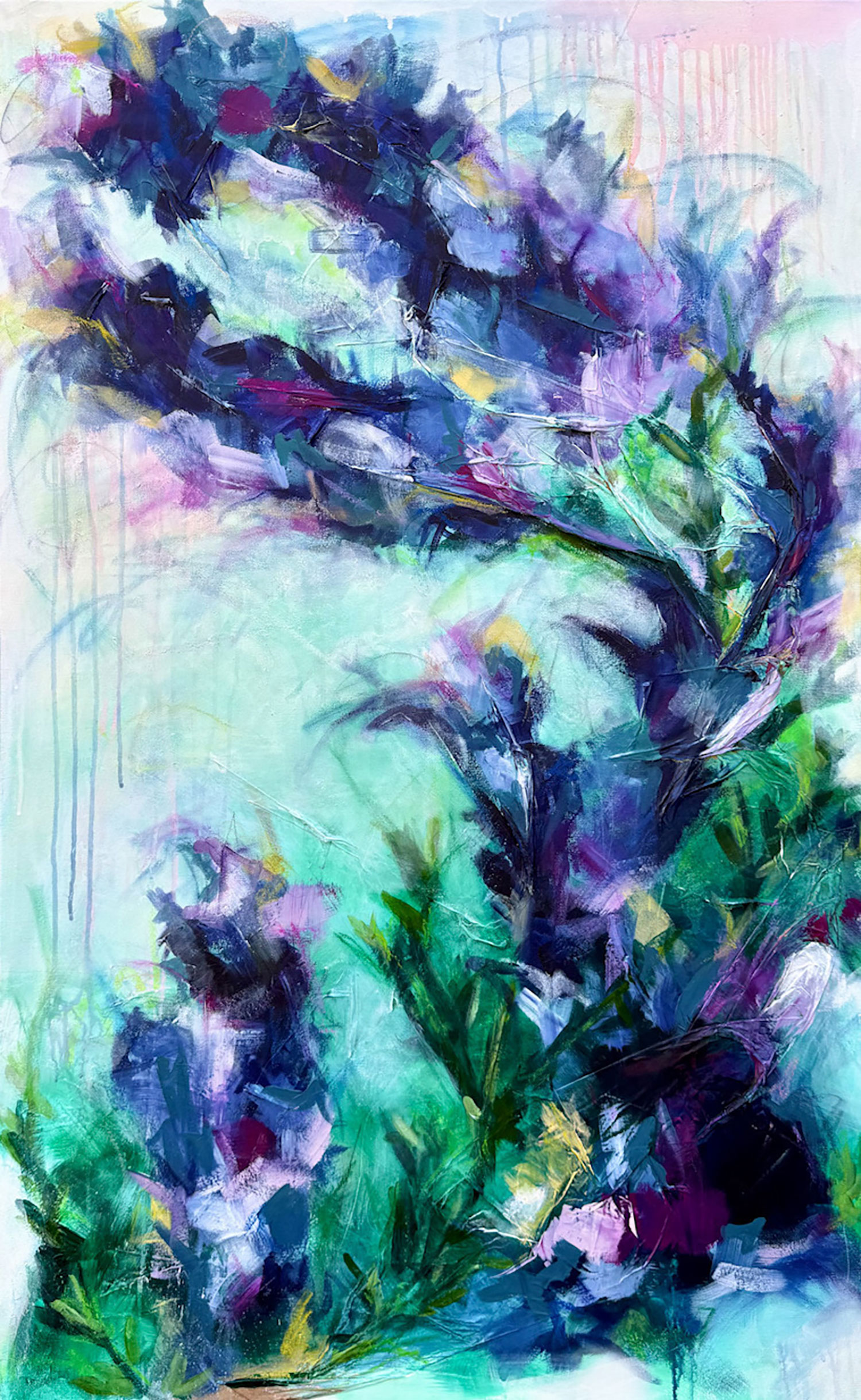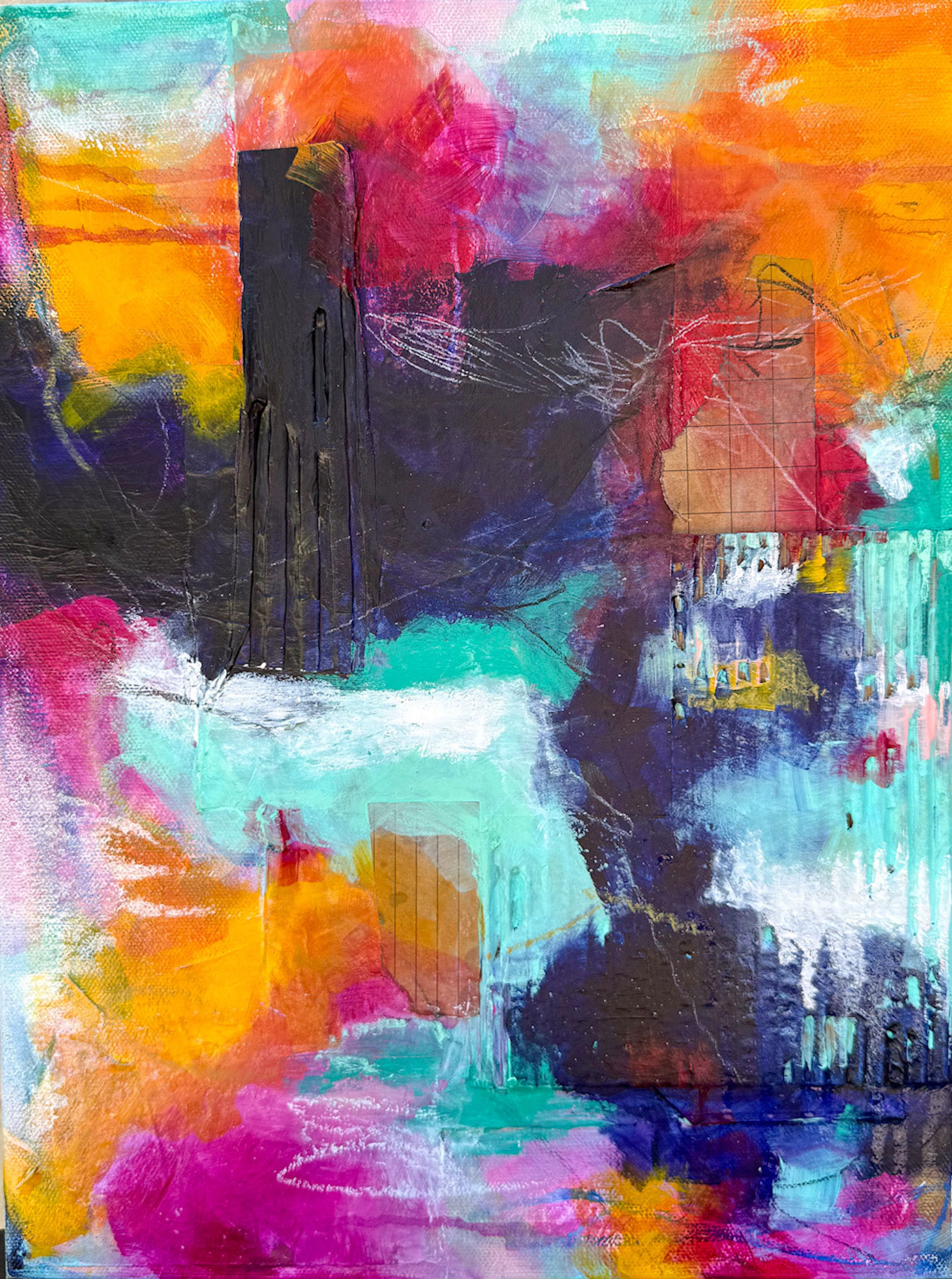 My work is highly textured, full of color, emotion and movement. I’m influenced and inspired by everything around me. I work with several different types of media, and love to experiment with layering and laying down paint and various materials, often using recycled papers, cardboard and other items, that result in beautifully, highly textured pieces. Having dealt with a tremendous amount of loss the past few years, my current body of work focuses on grief and what that can look like. By working through my own grief and history with chronic pain, I hope to inspire others along the way.
