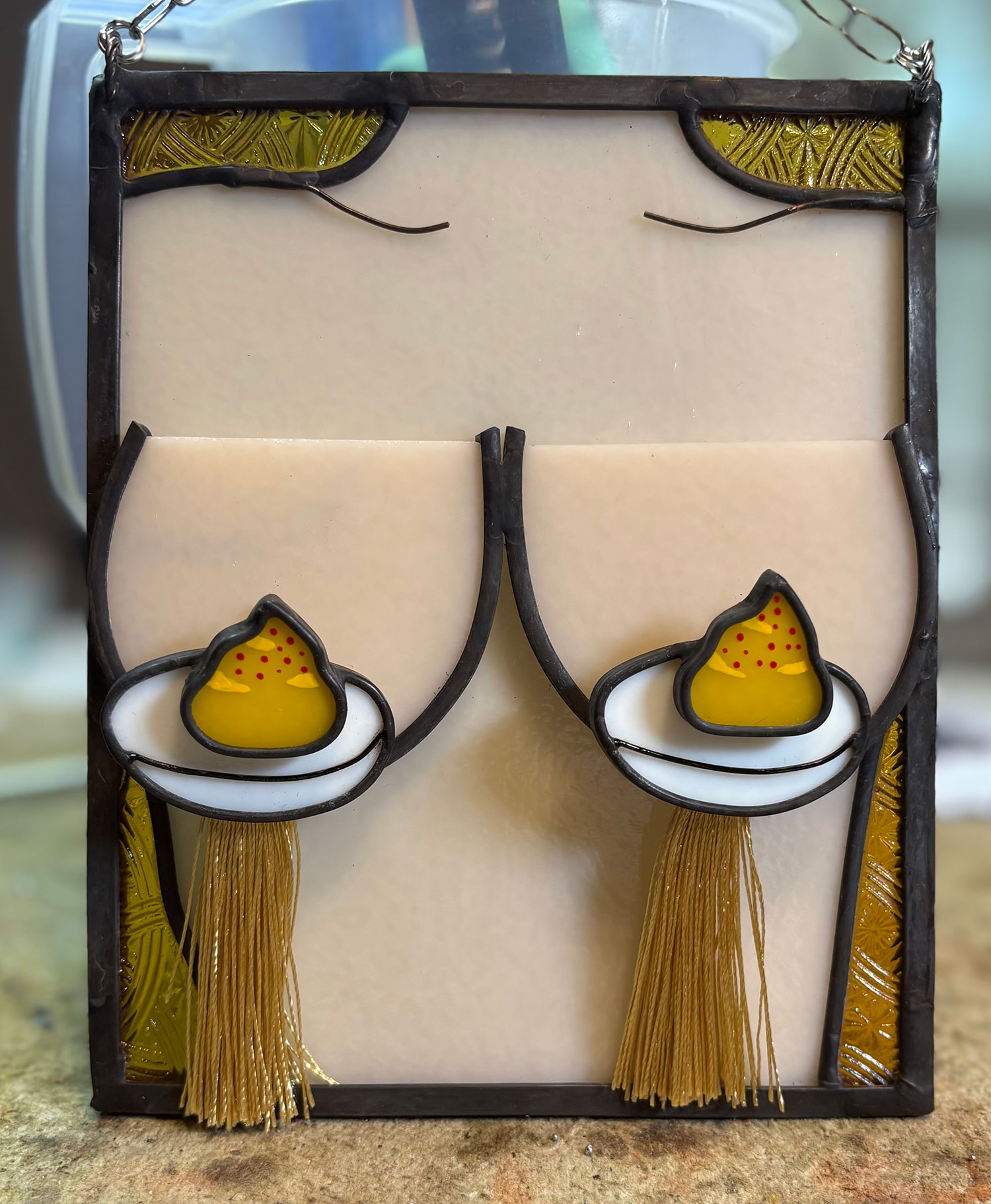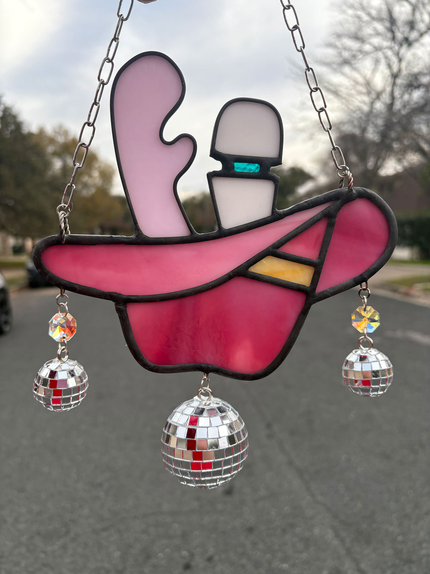 Feminine, cute, a little risqué art featuring a stained glass artist, street art, custom painted pots and purses, prints, drinks, raffle and games! Hang out and look at our art (: