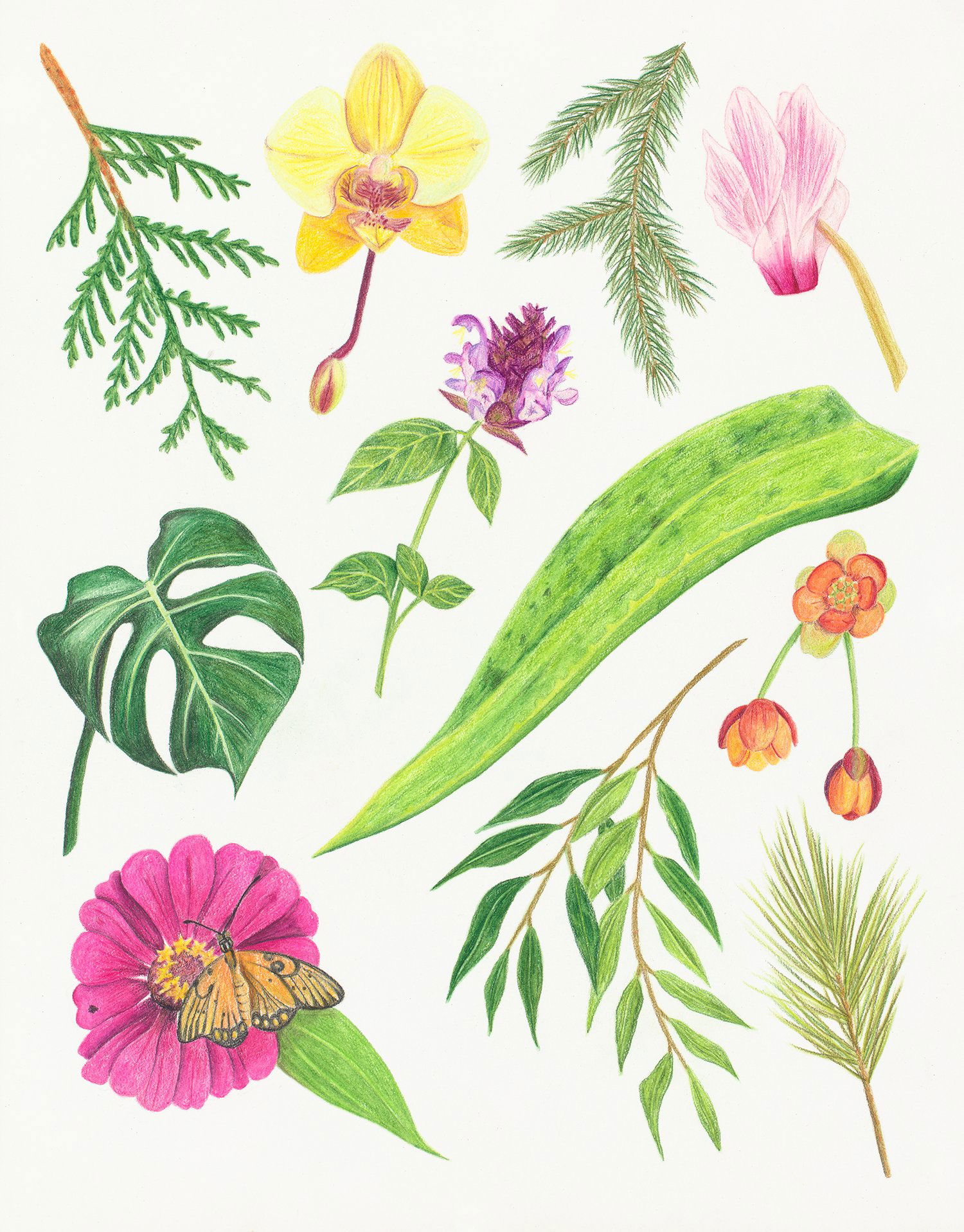 Inspired by the intersection of nature and science, my work includes detailed botanical drawings and abstract paintings of microscopic bacteria. In the past few years I have begun cutting up my artwork and weaving them together to create new mixed media compositions. My current body of work is both contemplative and colorful, representing the growth I’ve experienced living abroad and, eventually, finding my way back to Austin.