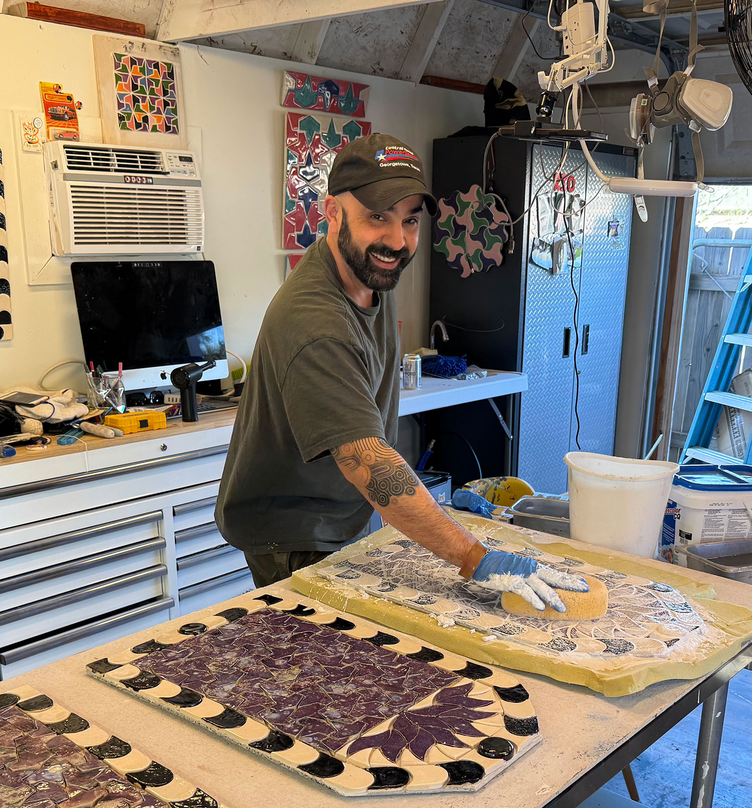 Jorge makes ceramic clay portals that feel like windows into calm and beauty. Each piece is handmade with simple patterns from nature and old places. They can live as mosaic tiles or stand-alone art. Hang one on a wall, set it on a shelf or place it outdoors on a patio or garden wall. Your space feels warmer and more alive. Made with care, built to last and meant to spark a quiet moment every time you look.