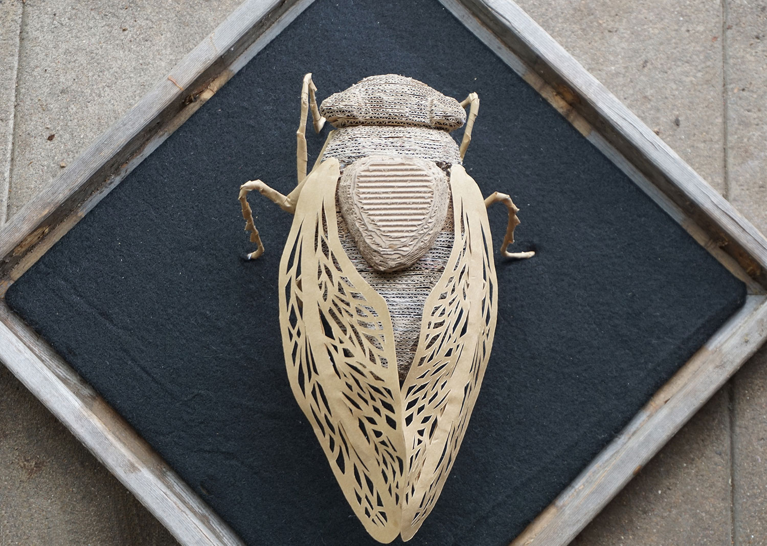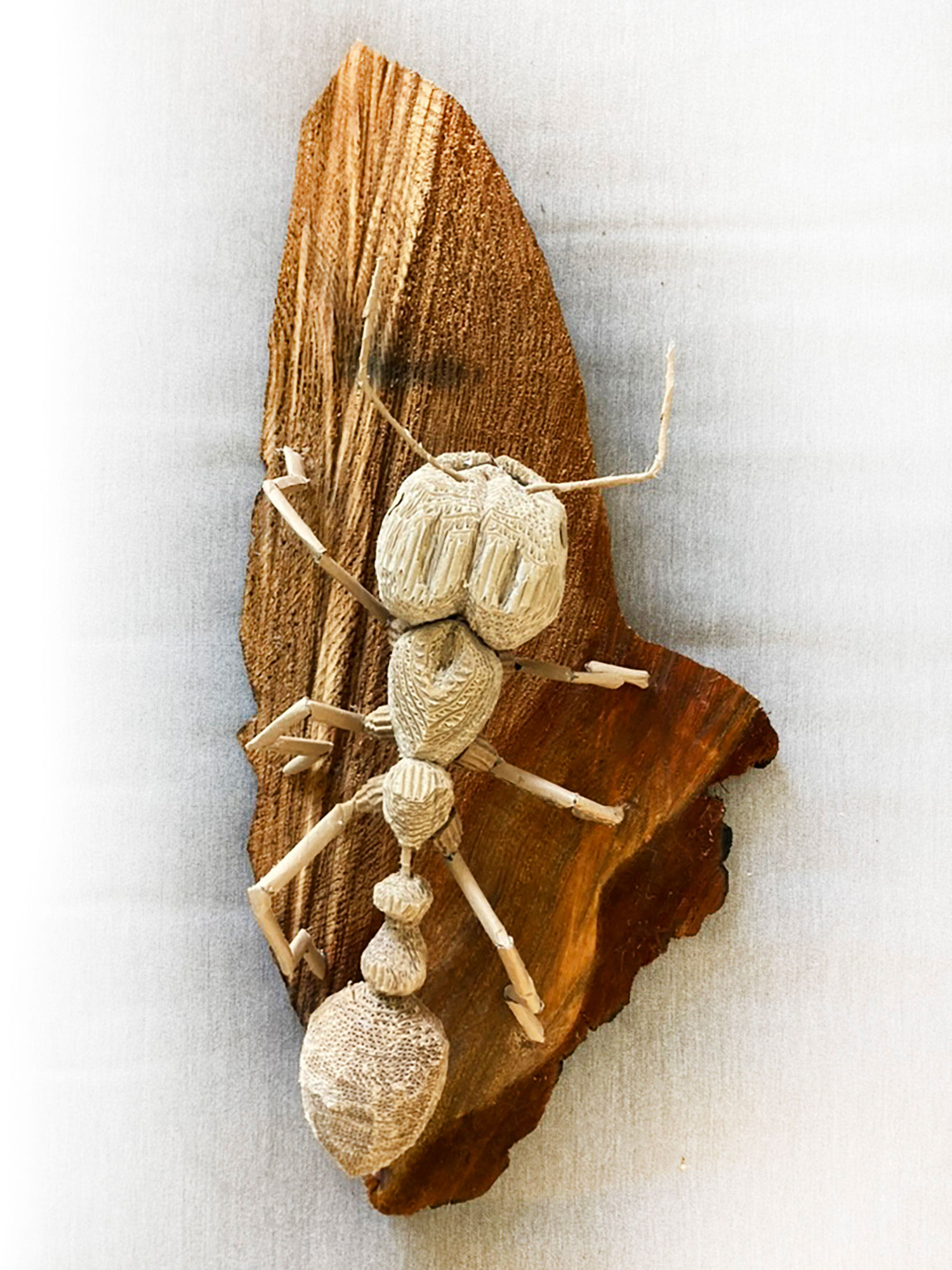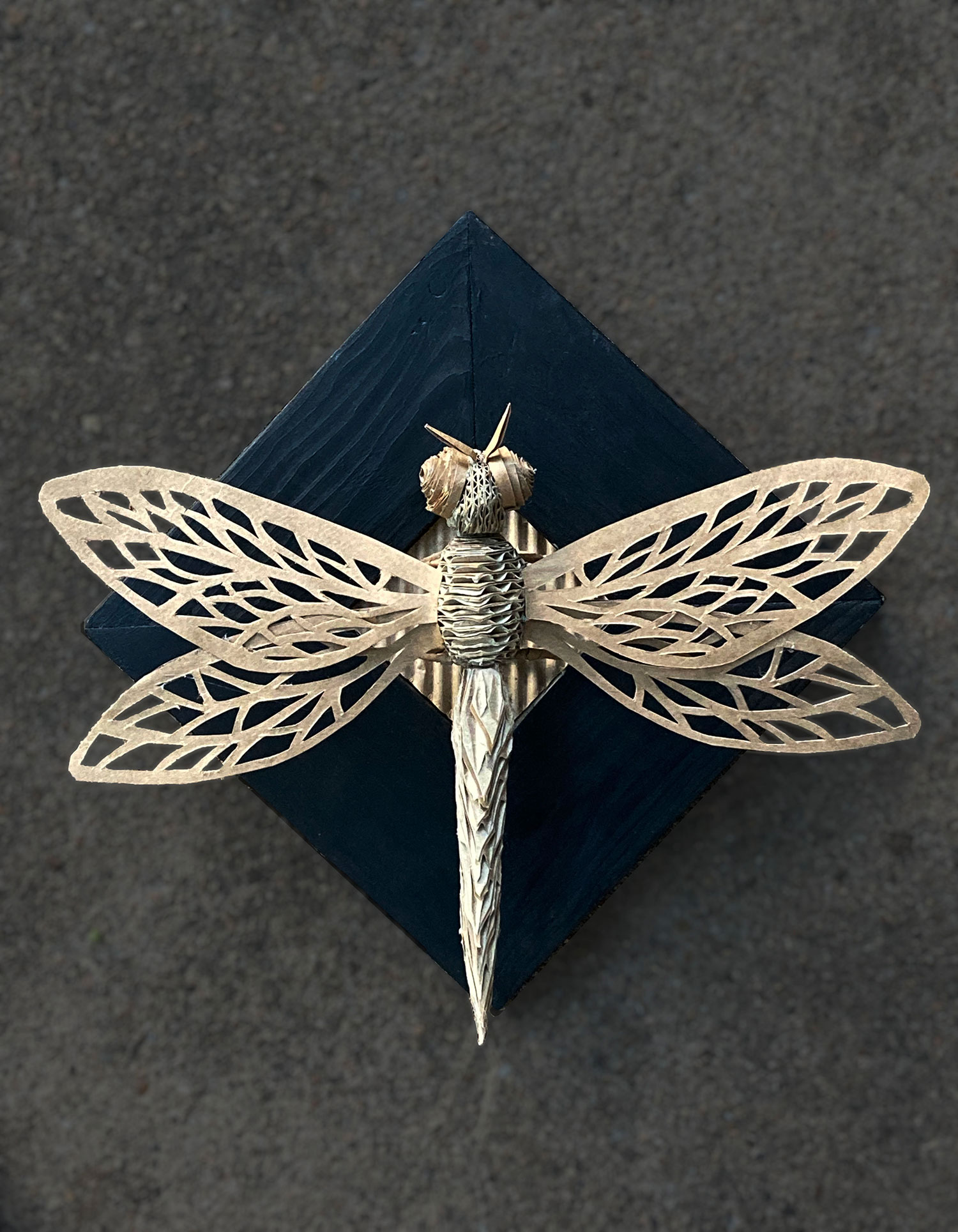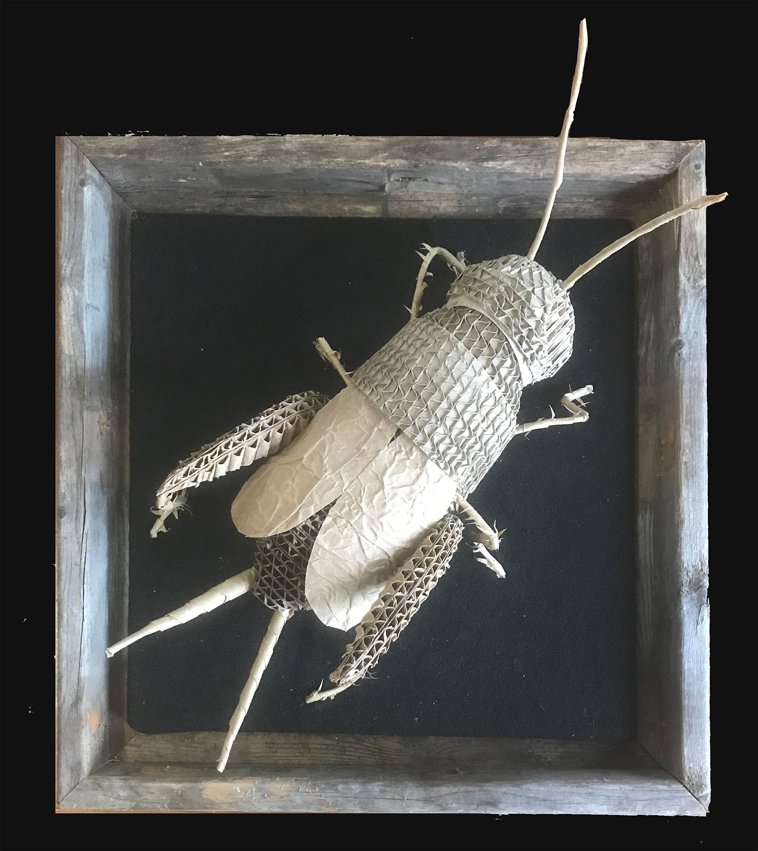 I am a cardboard sculpture artist who works with recycled materials. I focus mainly on insects and plants. They are mostly wall hung sculptures and often incorporate found wood.