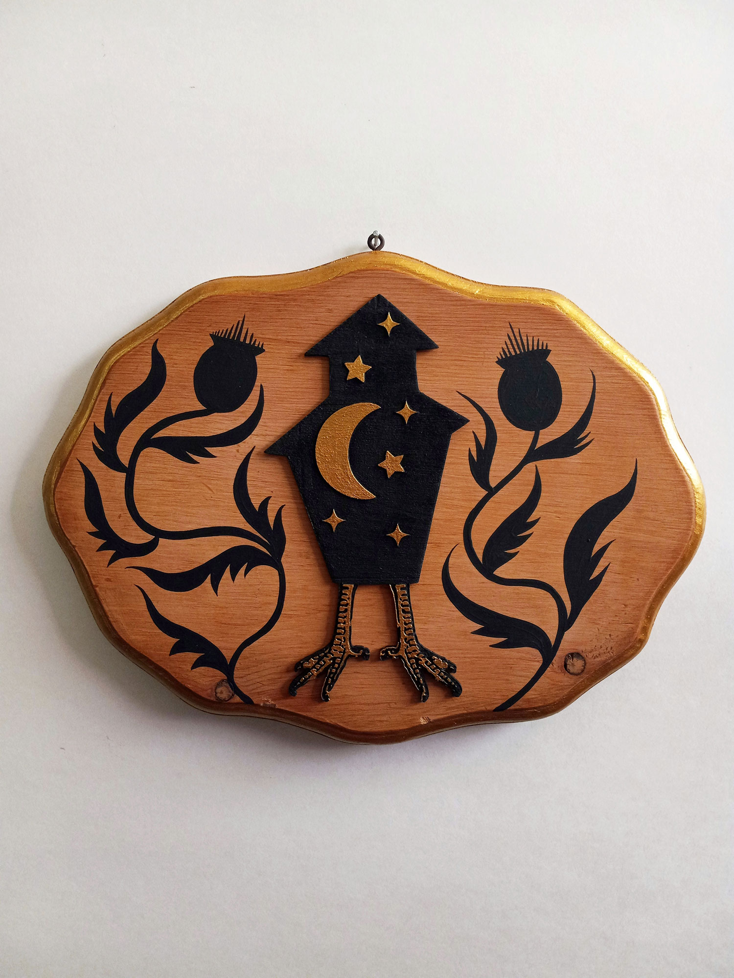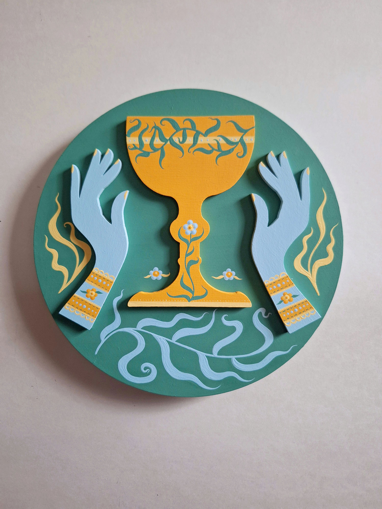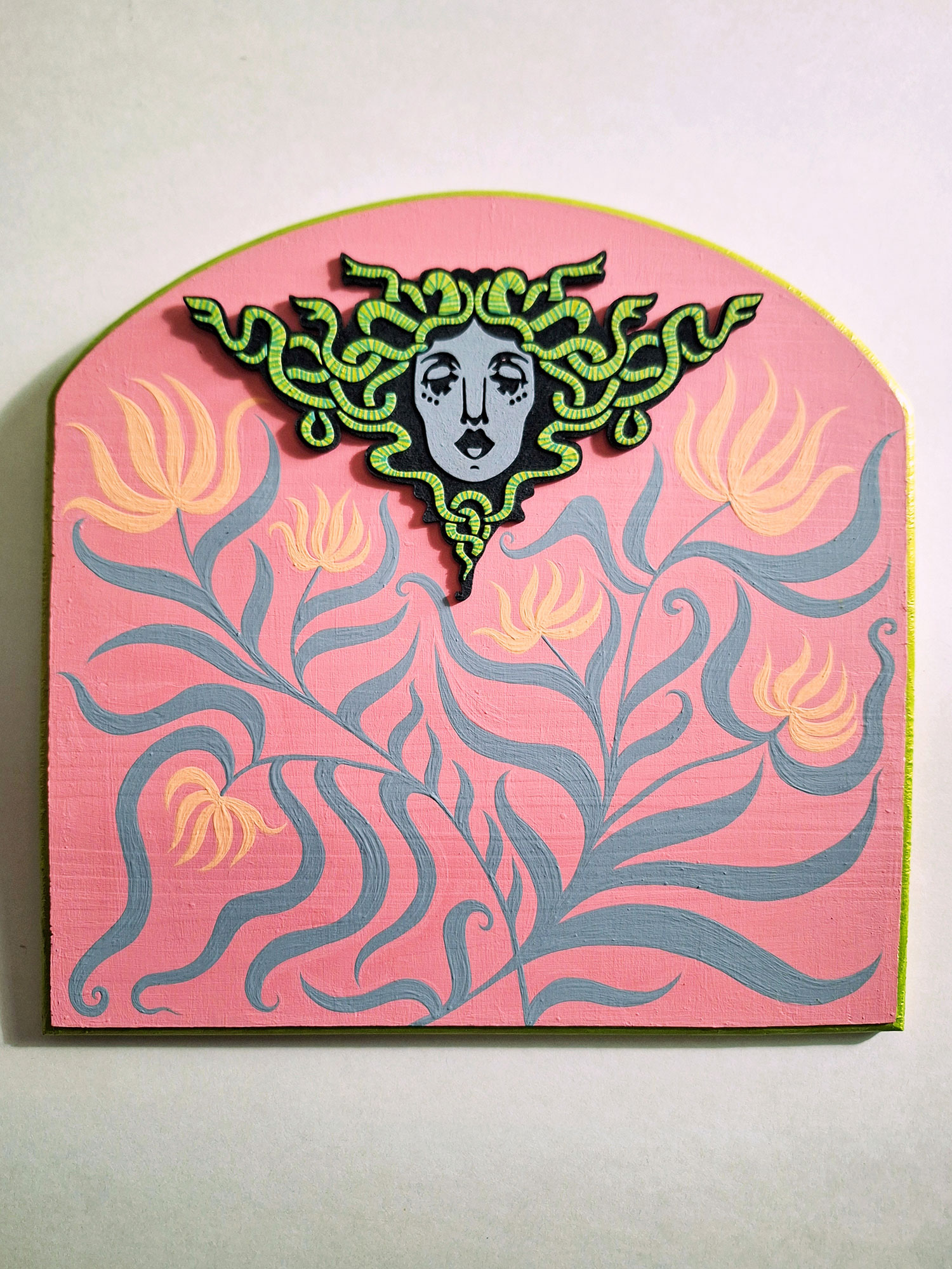 Katie Cowden returns to Coco Coquette for another year of the Austin Studio Tour! Come see the intricately painted lasercut mixed media art, made primarily from upcycled and scrap wood. This year, the collection speaks of the witchcraft and weaponry used for the protection of marginalized folks. Vengeful goddesses, swords, tarot and witches abound!