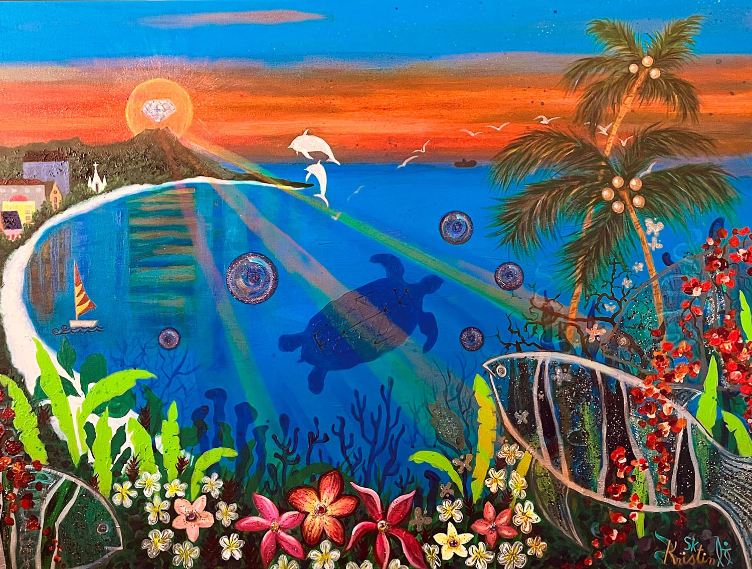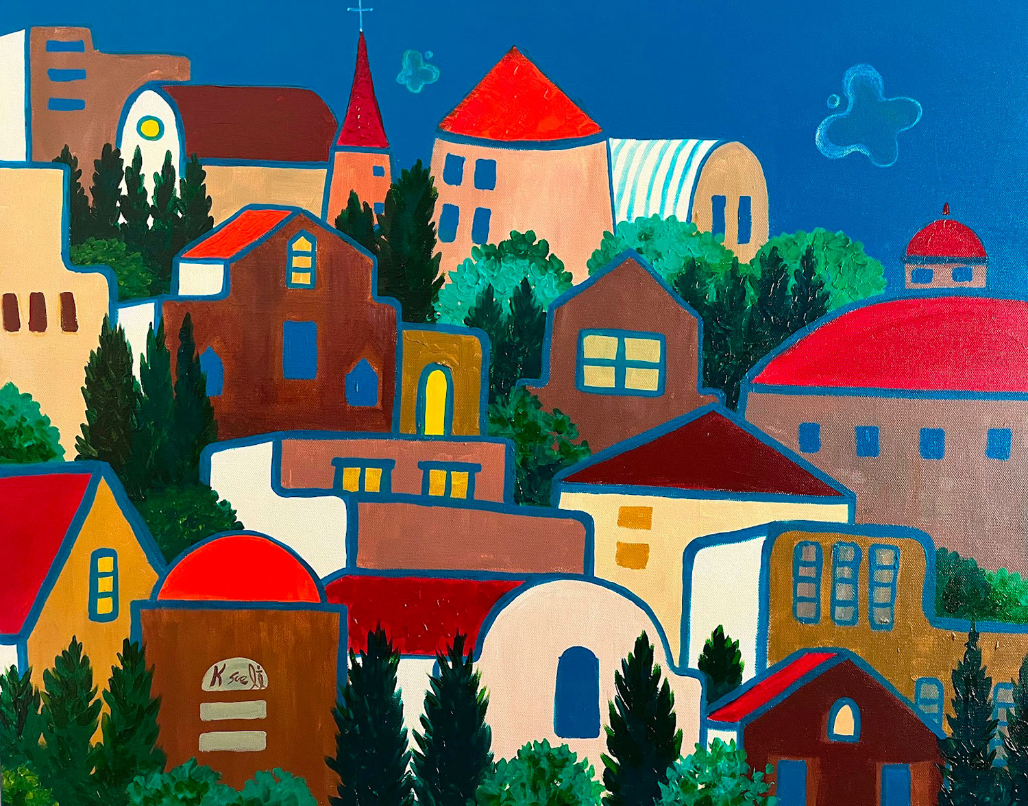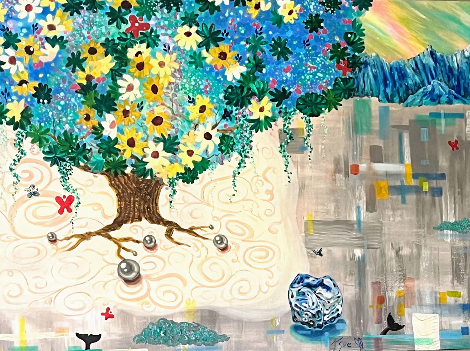 Explore paintings that weave emotional experiences into a language of deeply personal symbols. Artist Kristin Sue Kim draws from cultural references and personal memories, hiding treasures like angels, stars and architectural details within her work. This collection is offered as a channel for healing, reflecting on both joy and suffering to spread light in the dark corners of the heart.