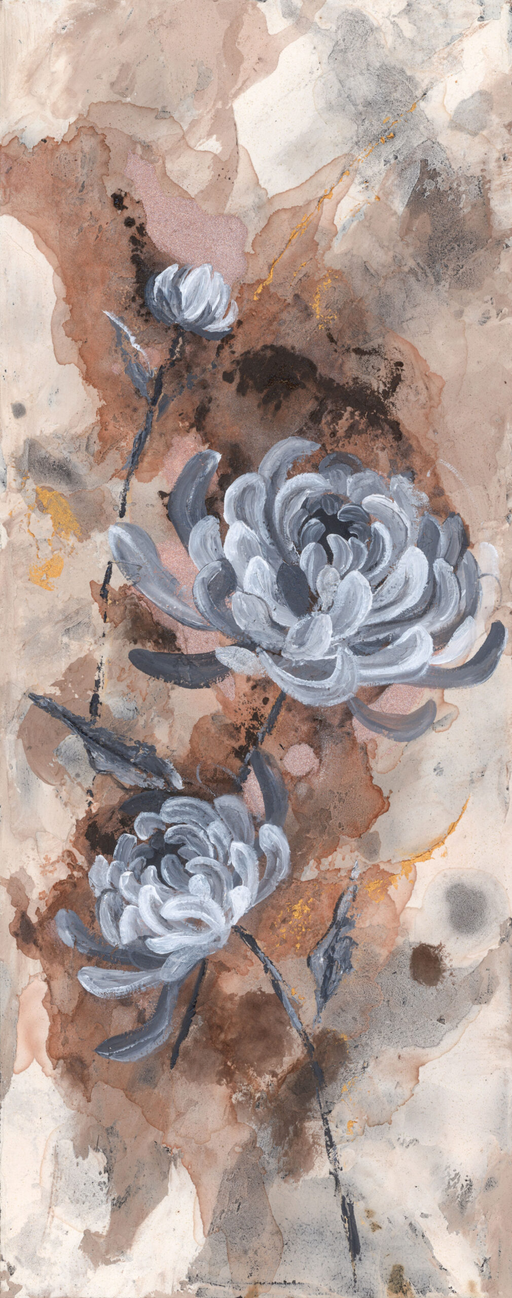 Lauren Hua is an contemporary abstract painter who uses art as a way to blend her American upbringing with her Asian heritage. Carrying her heritage to the canvas as the subject, her pieces are free flowing, with both Japanese and Chinese influences in the brush strokes, motifs and compositions, yet breaks from tradition with bold textures and splashes of metallics which speaks to the more Western, independent, contemporary style.