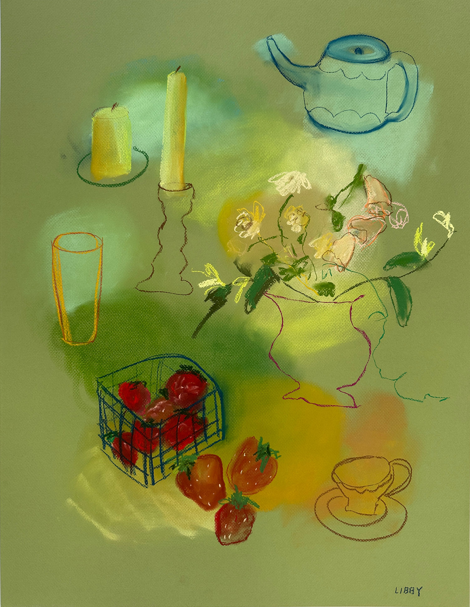 I’m a local artist working mainly with pastels on paper. My work explores rest, memory and community—translating feeling into color and capturing quiet moments to be felt again. From dinner tables to found chairs, I’m drawn to everyday scenes that reflect how we slow down, connect and find meaning. I’m always experimenting with new mediums and ways to express these ideas.