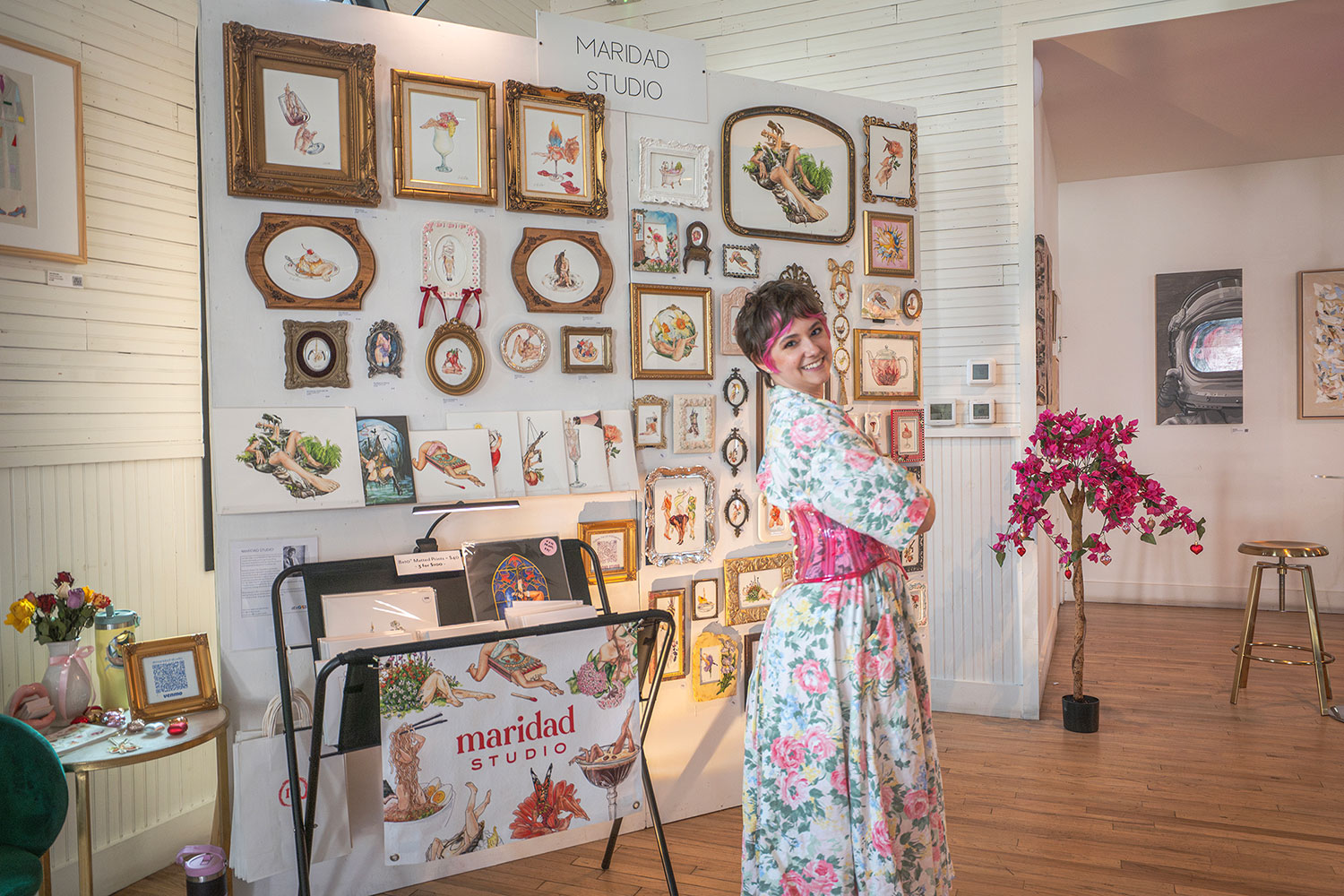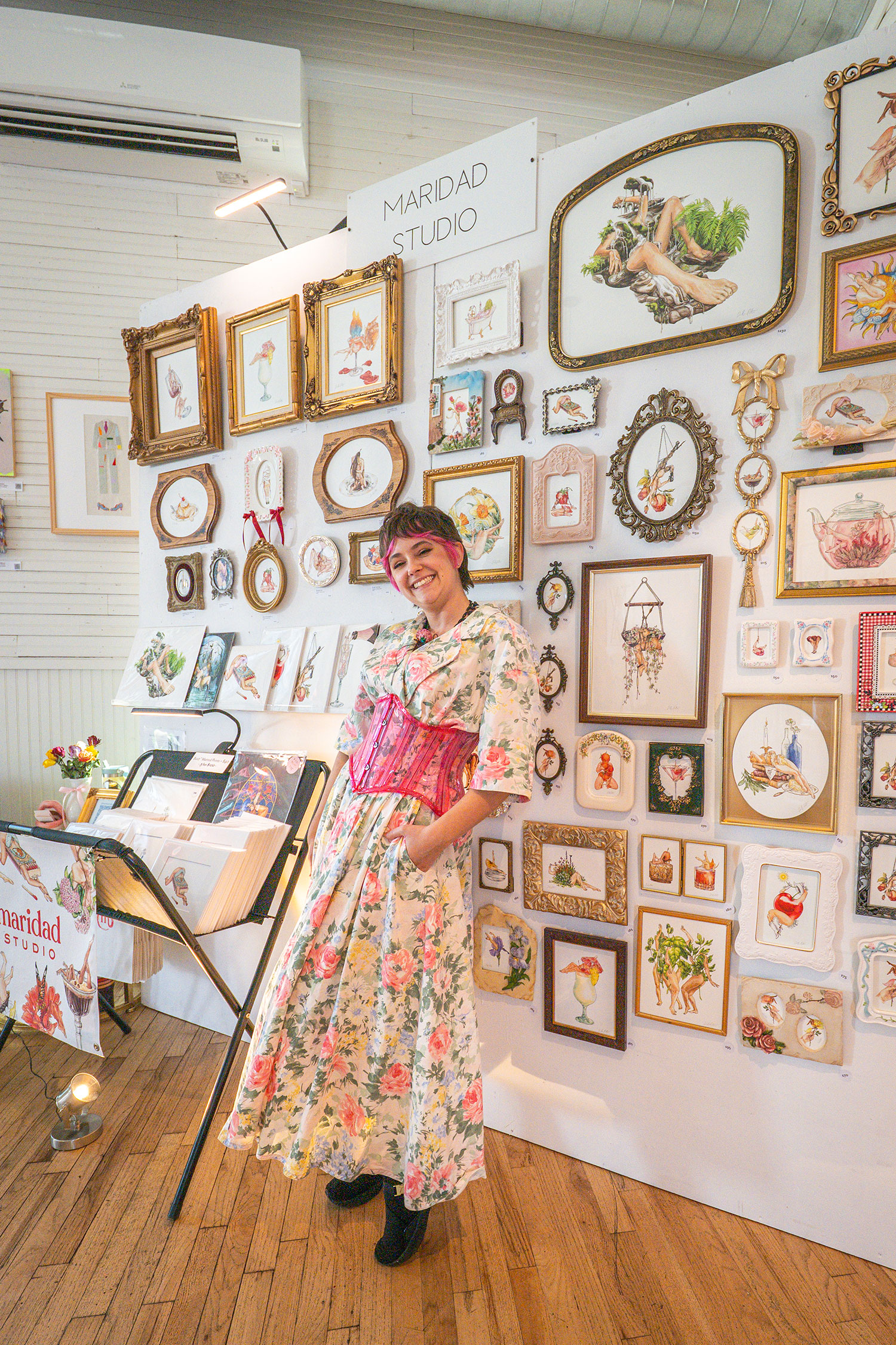 Step into the surreal world of Maridad Studio where her figurative illustrations blur the lines between desire and consumption. Each piece from her ever-growing collection (since 2016) is thoughtfully selected and paired with a unique vintage frame, creating a timeless blend of art and history. Perfect for collectors and gift givers alike, these framed works bring warmth, charm, and sophistication to any space.