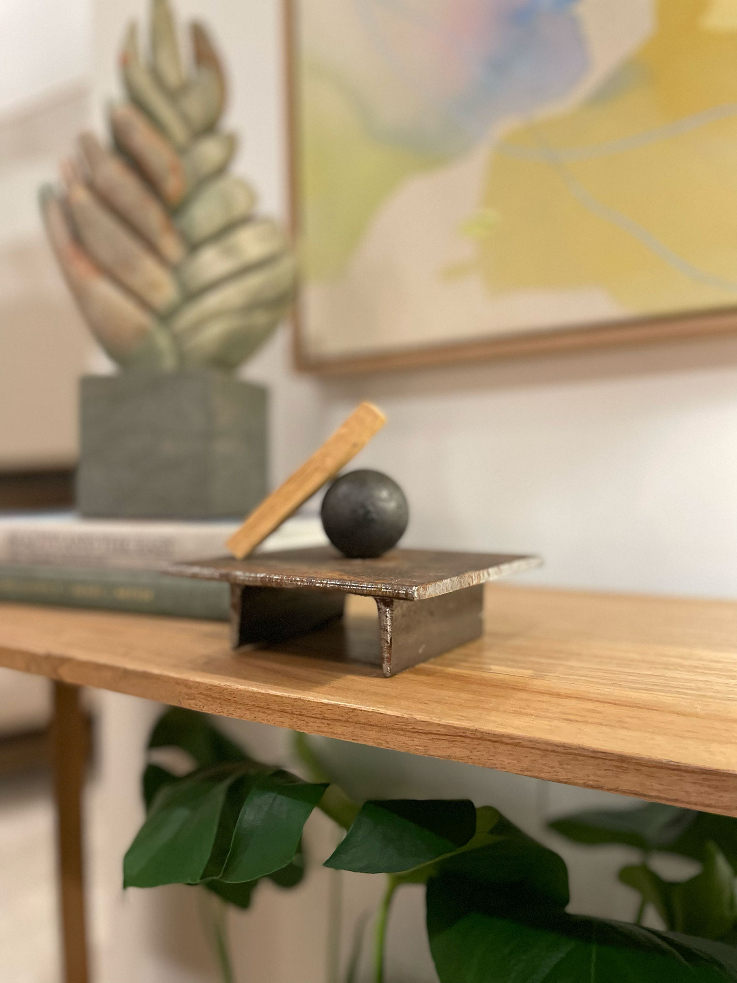 I create wabi sabi inspired decor carved from industrial steel, juxtaposing the ephemeral nature of smoke, paper and wood with the perceived permanence of steel. On a universal scale, all are coming into and out of existence, reminding us that while nothing last forever, we’re all here for now.