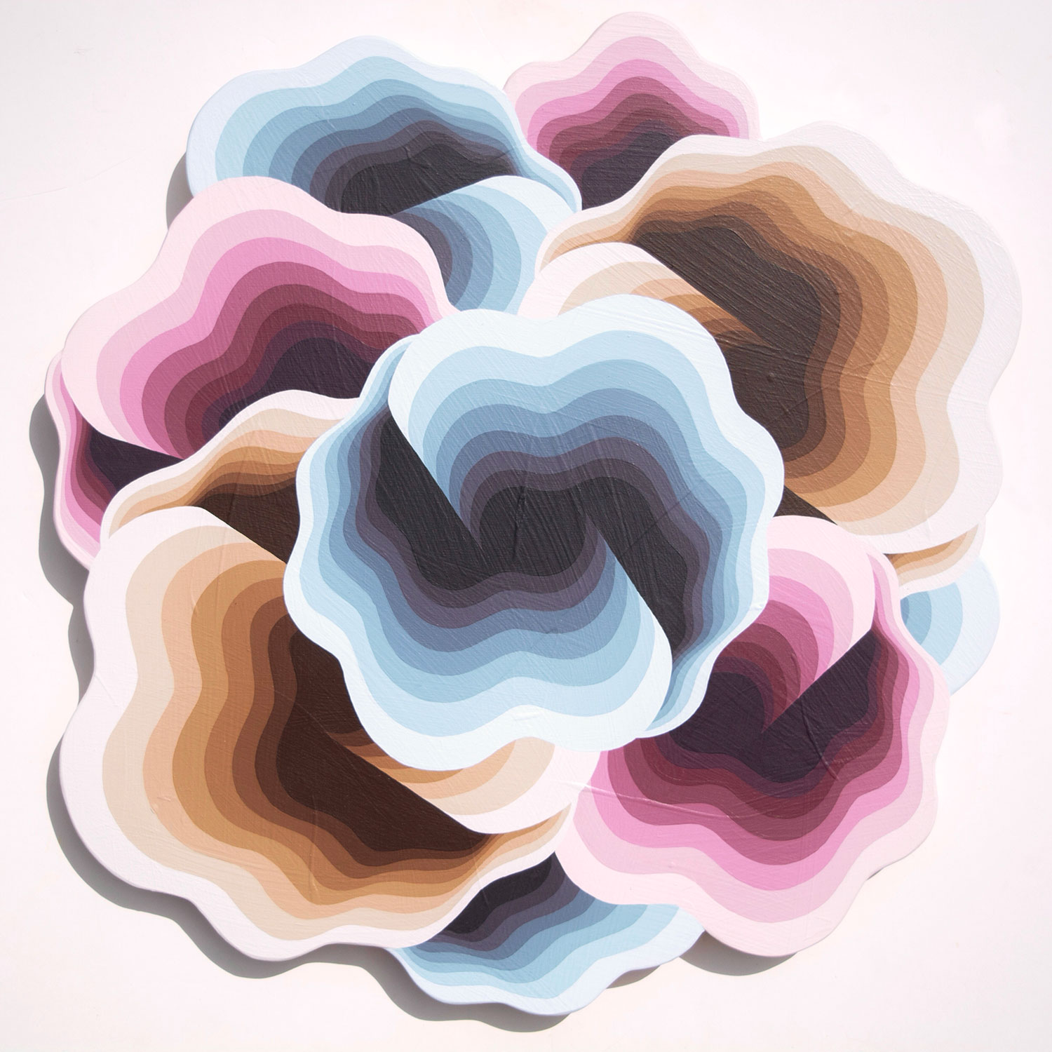 I approach painting as a meditative and deeply intentional practice. Working entirely by hand, I mix and remix each color individually, applying pigment without the use of tape or masking. My abstract works draw on the flat color fields and hard-edged aesthetics of my background in screenprinting, infusing quietly luminous gradients that suggest movement, depth, and transition. The result is work that feels both contemporary and timeless—at once calming and kinetic.