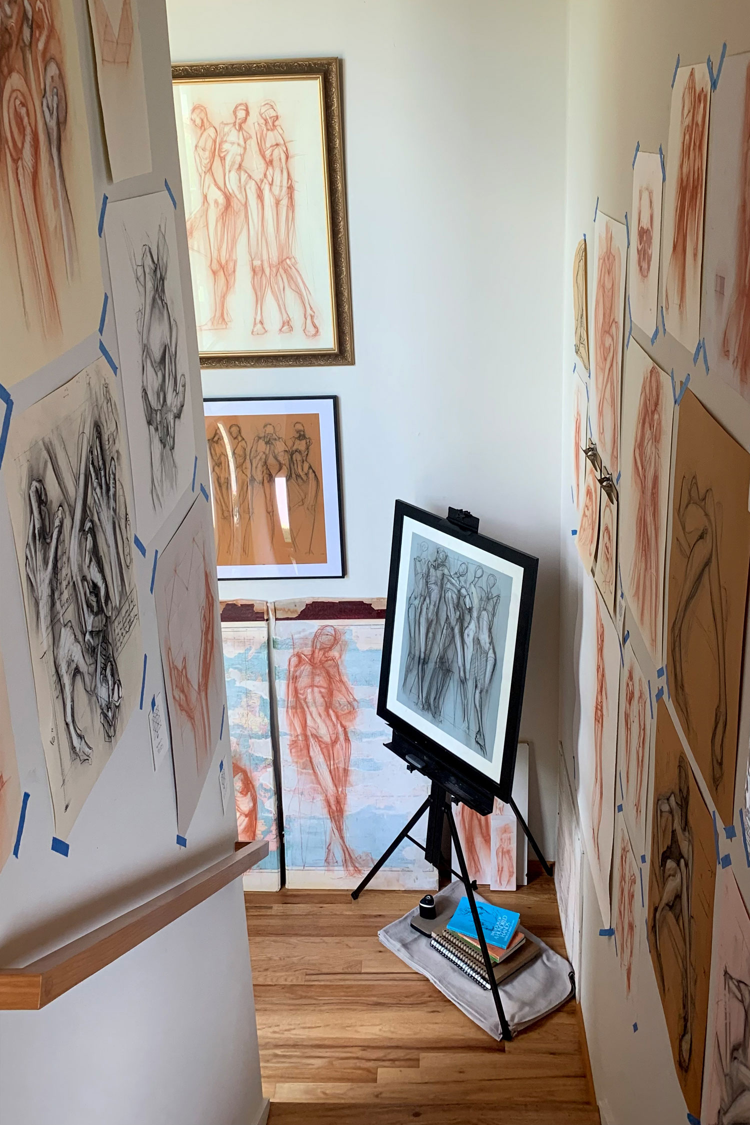 As a draughtsman guided by the techniques of the old masters, my work unites drawing and design. Art rooted in the Renaissance idea of disegno, where every line carries both structure and intent. Together with my wife, we live a life intertwined with our creative process, blurring the line between artist and muse. Our studio walls overflow with works from our current series, Mad at Time, which follows a single figure into shifting states of being. These drawings reveal as much about the structure of the body as the mind within it, inviting viewers to see themselves reflected in each moment.