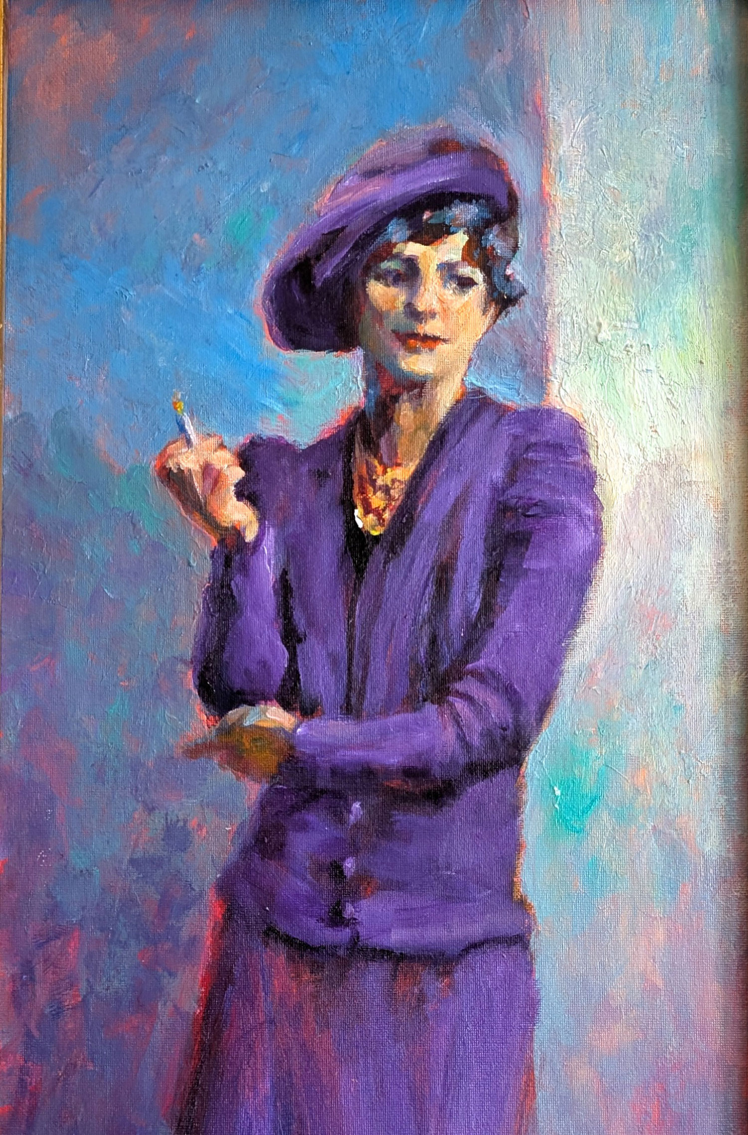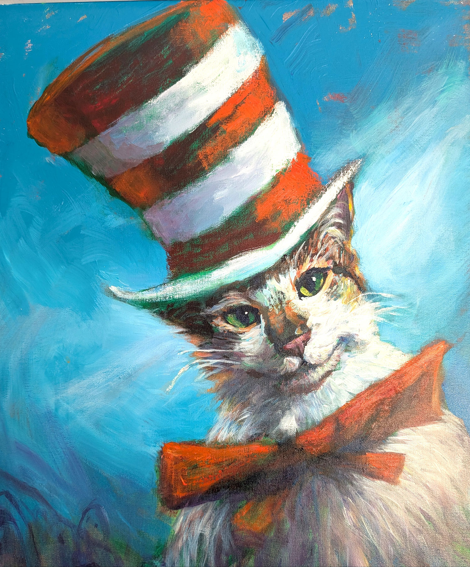What do I paint? What I feel like that morning. I paint a wide variety of subjects, best known for my paintings of children’s book subjects like Simple Simon and Puss in Boots, and also portraits of people and animals. The years I spent at my mother’s ancient home in Cornwall, England, had a great effect on my work. I have been an exhibiting artist and painting teacher (The Contemporary) for many years in Austin. I studied in Philadelphia at the Pennsylvania Academy of Fine Arts, before working with Bob Levers at the U. of Texas.