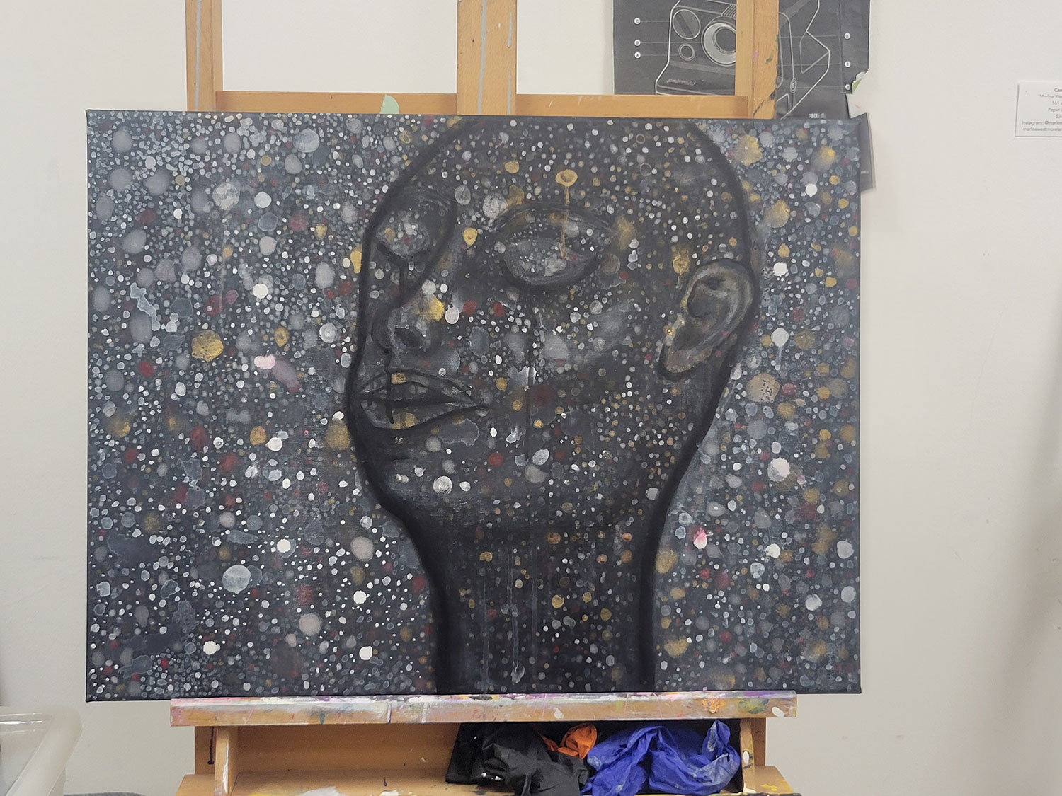 I am a mixed medium artist. I don’t have a set style but I create whatever comes to mind. As of late, I’ve been using fun bright colors or objects that I find second-hand. The theme of my recent paintings explore a boundary of playful sensuality or something a little deeper.