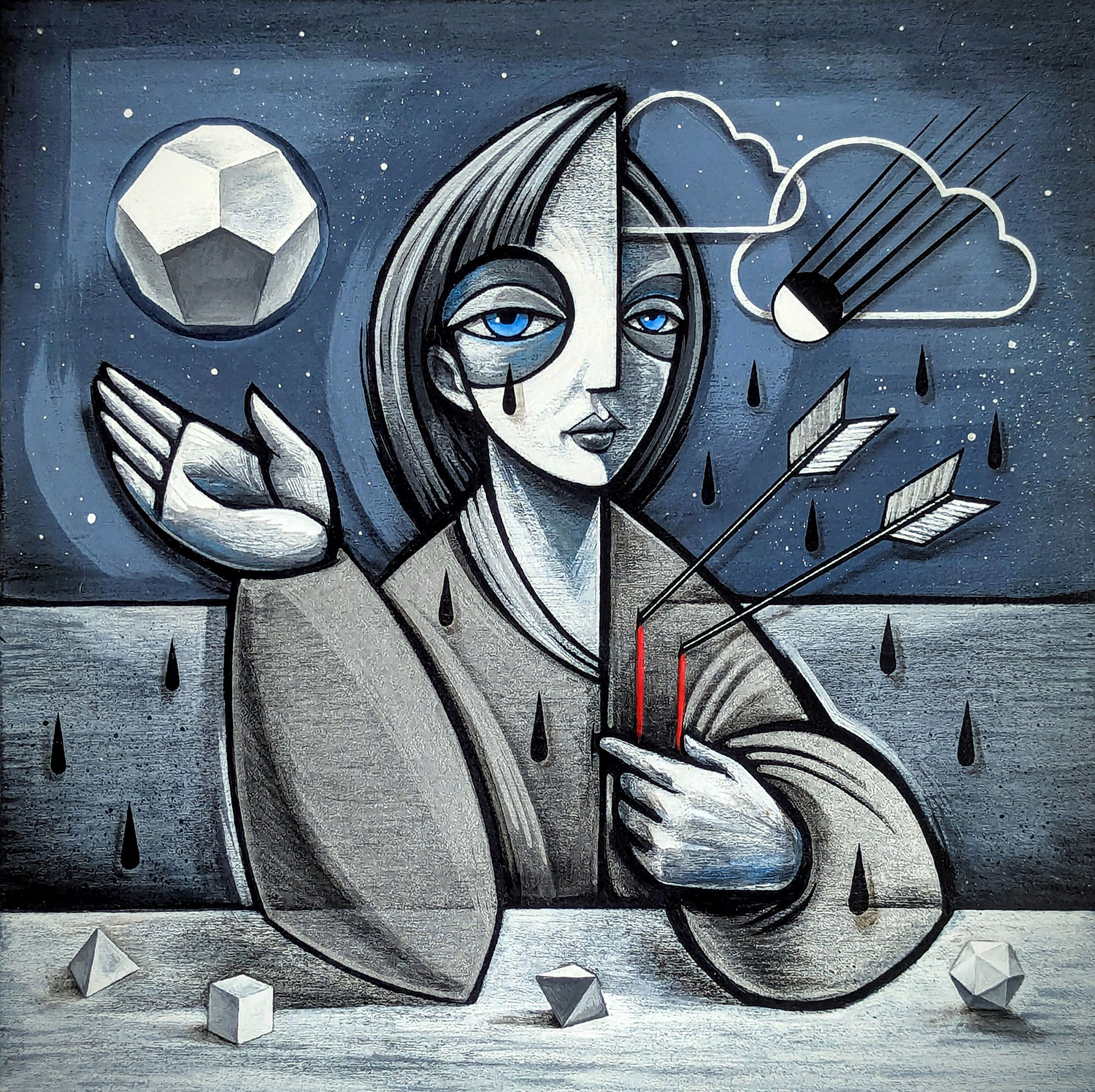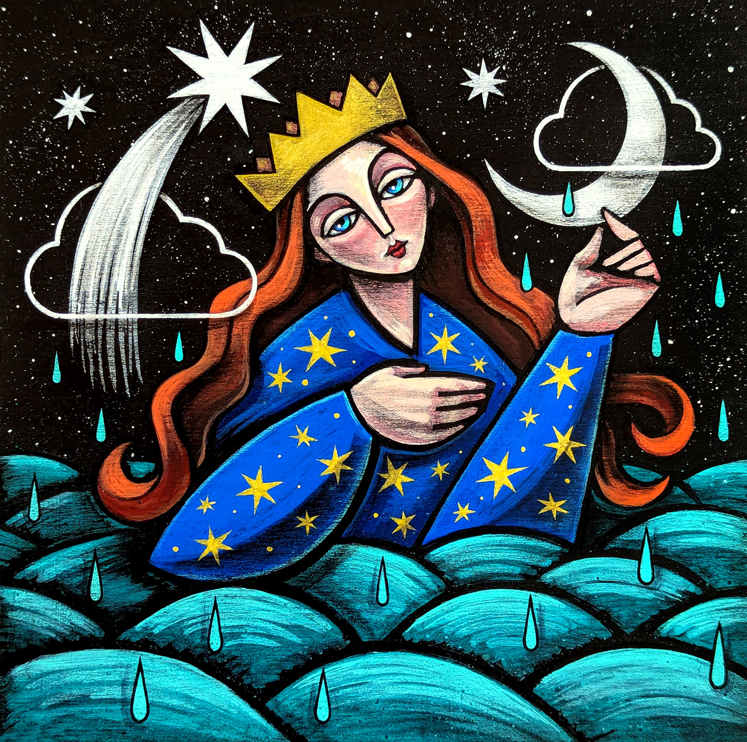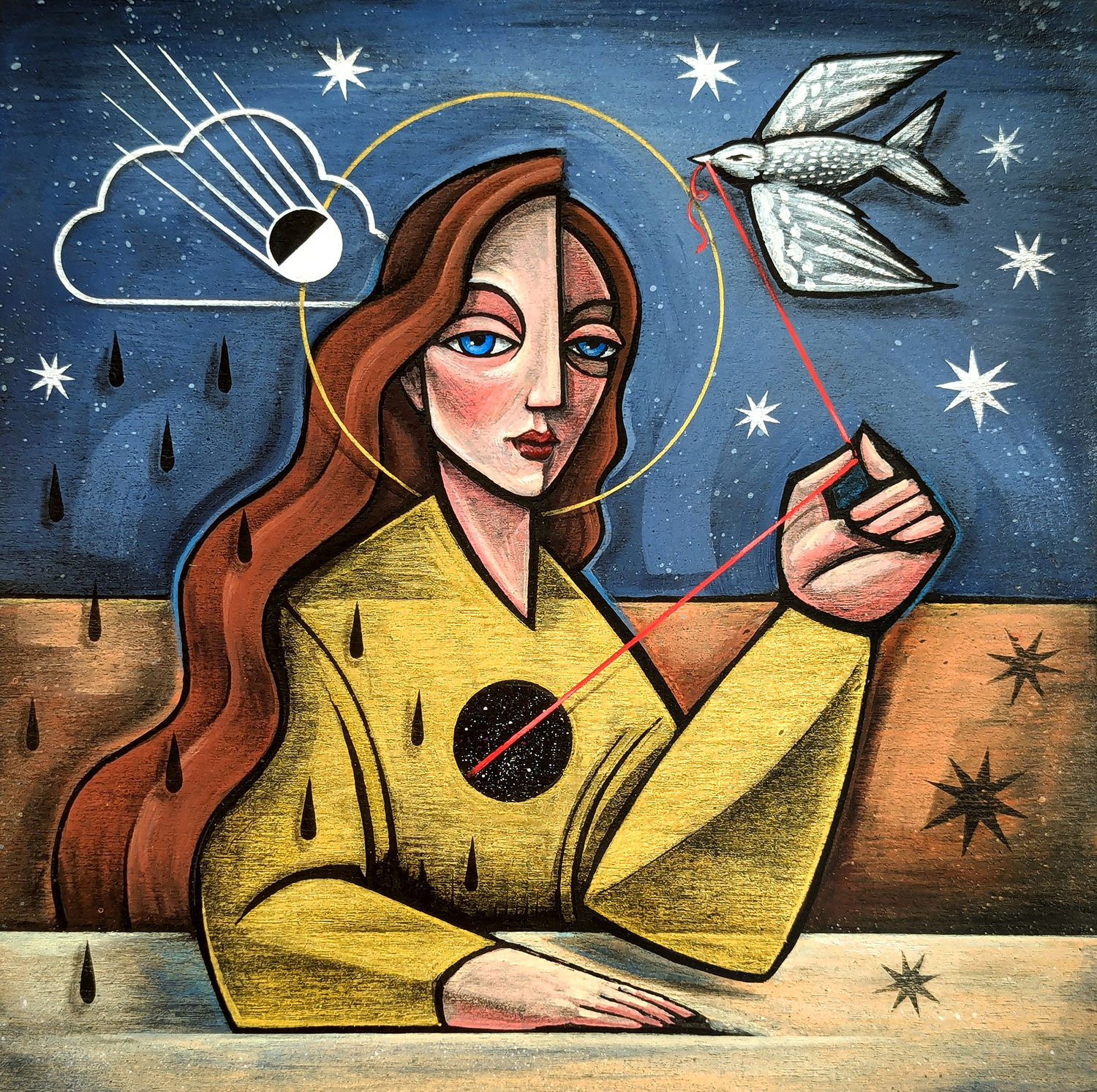 Saira Holland’s art is a blend of surrealism, cubism and art deco with a southwest folk-pop flare. Her paintings beautifully depict strong female imagery set against cosmic backdrops adorned with symbols and myth. Swing by Make ATX to see her work up close and shop a variety of products including prints, stickers and original paintings on shaped wood created in the on-site laser cutting studio.