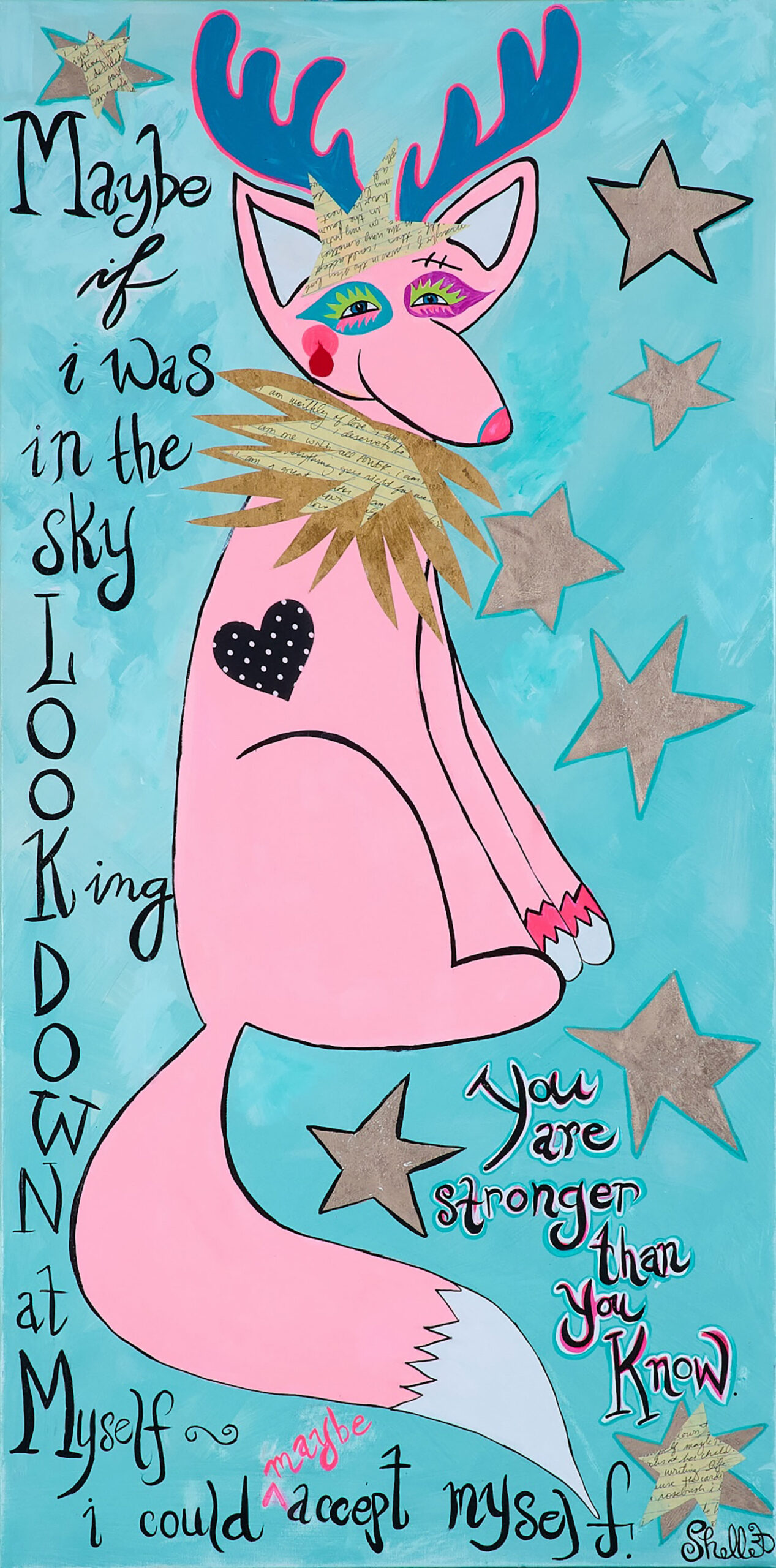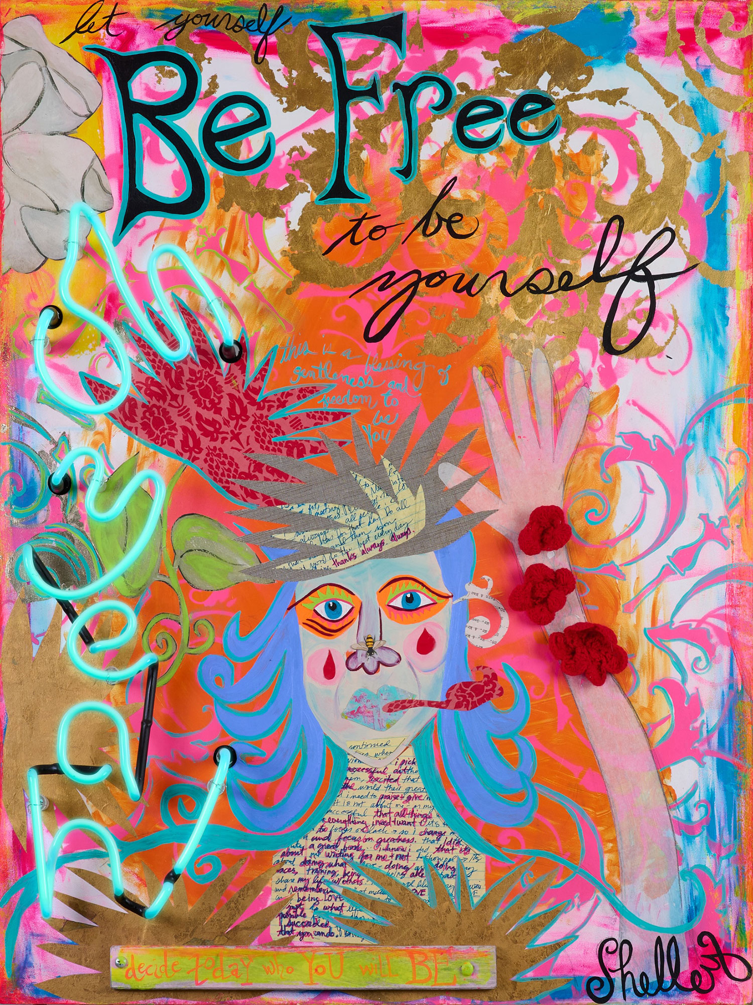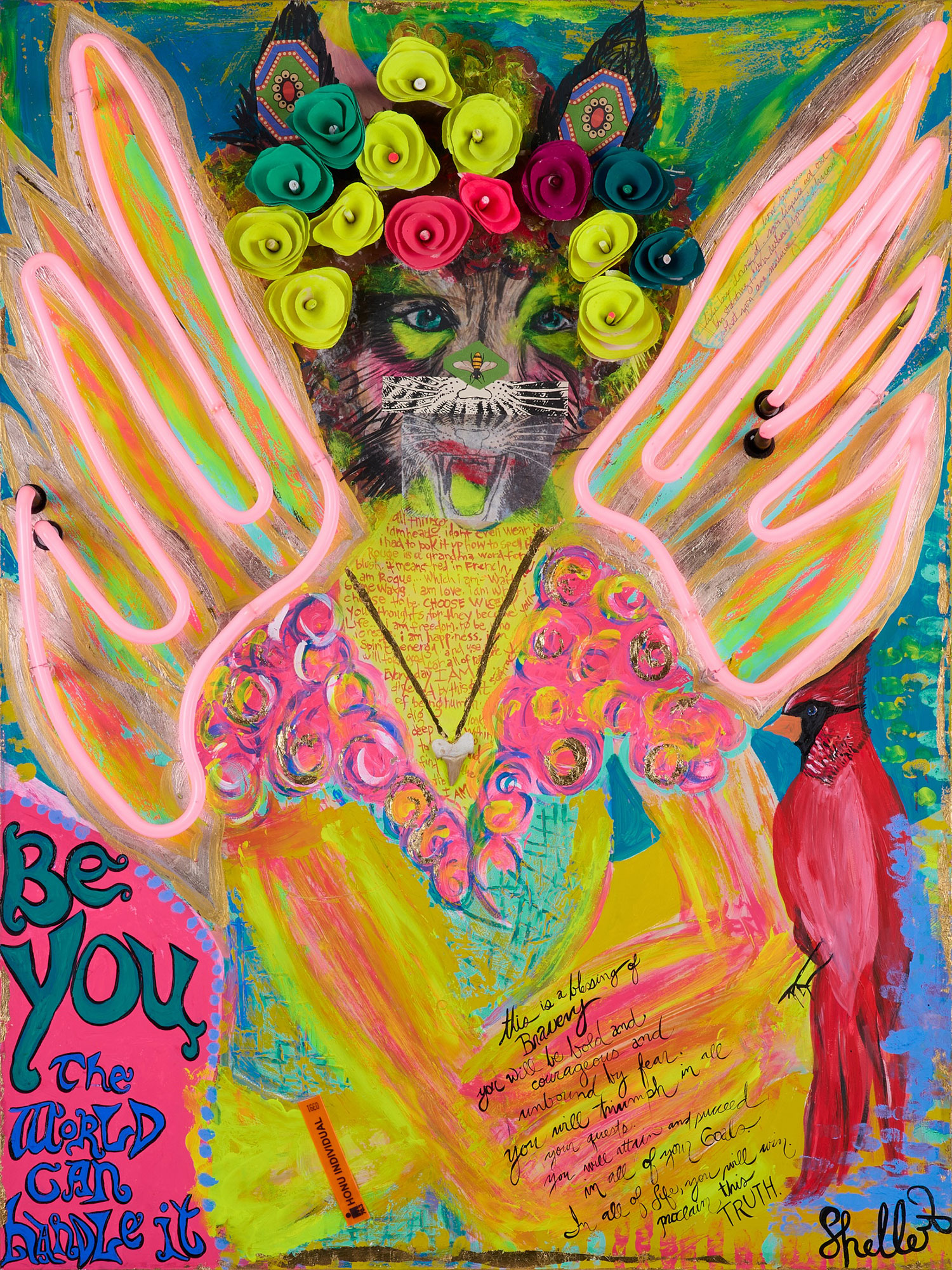 Expect a fun, colorful and vibrant home studio when you walk through Shelley’s door. From vintage wallpaper to pink chandeliers, Shelley’s truly created a self-love journey that almost emulates Alice in Wonderland. Shelley’s spotlight pieces include her large scale Animal Queen paintings, mixed media neon and hand-painted signs. Expect bubbly positivity when you arrive!