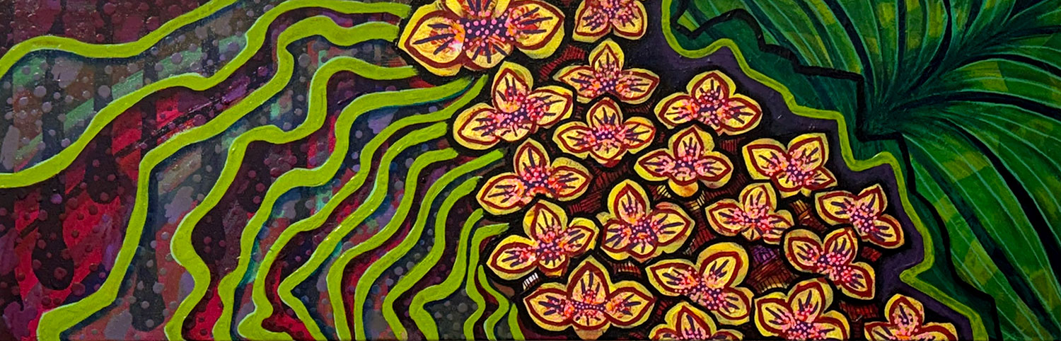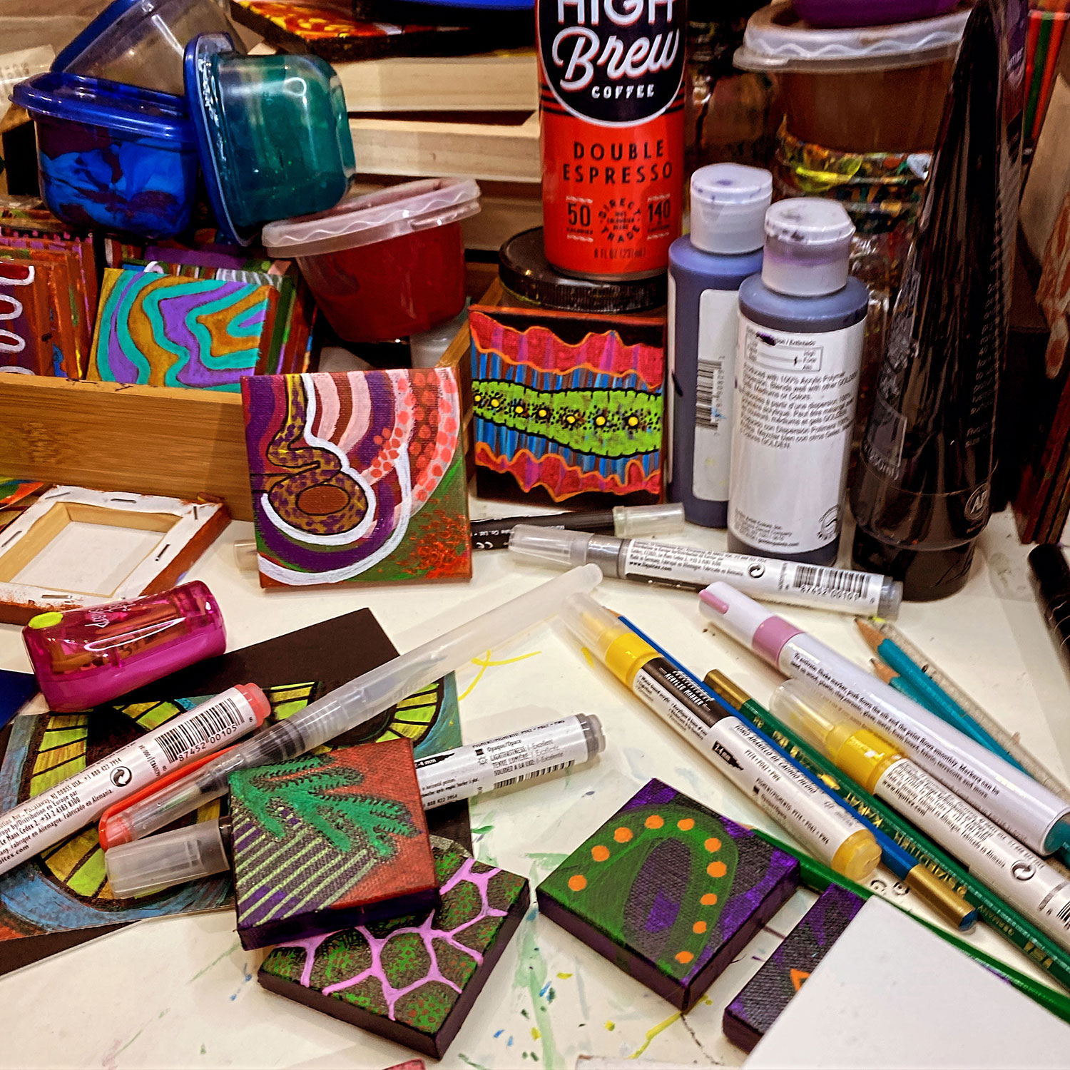 My abstract works explore the idea of deconstructing and reconstructing images from my surroundings. Drawing from familiar objects, memories and photographs, I create layered compositions filled with bold patterns and contrasting colors. Each painting becomes a distilled reminder of fragmented objects and landscapes—an echo or souvenir of the original experience. By dismantling the familiar and reassembling it, I invite viewers to reconsider their perception of reality and embrace a more abstract, dreamlike interpretation of their world.