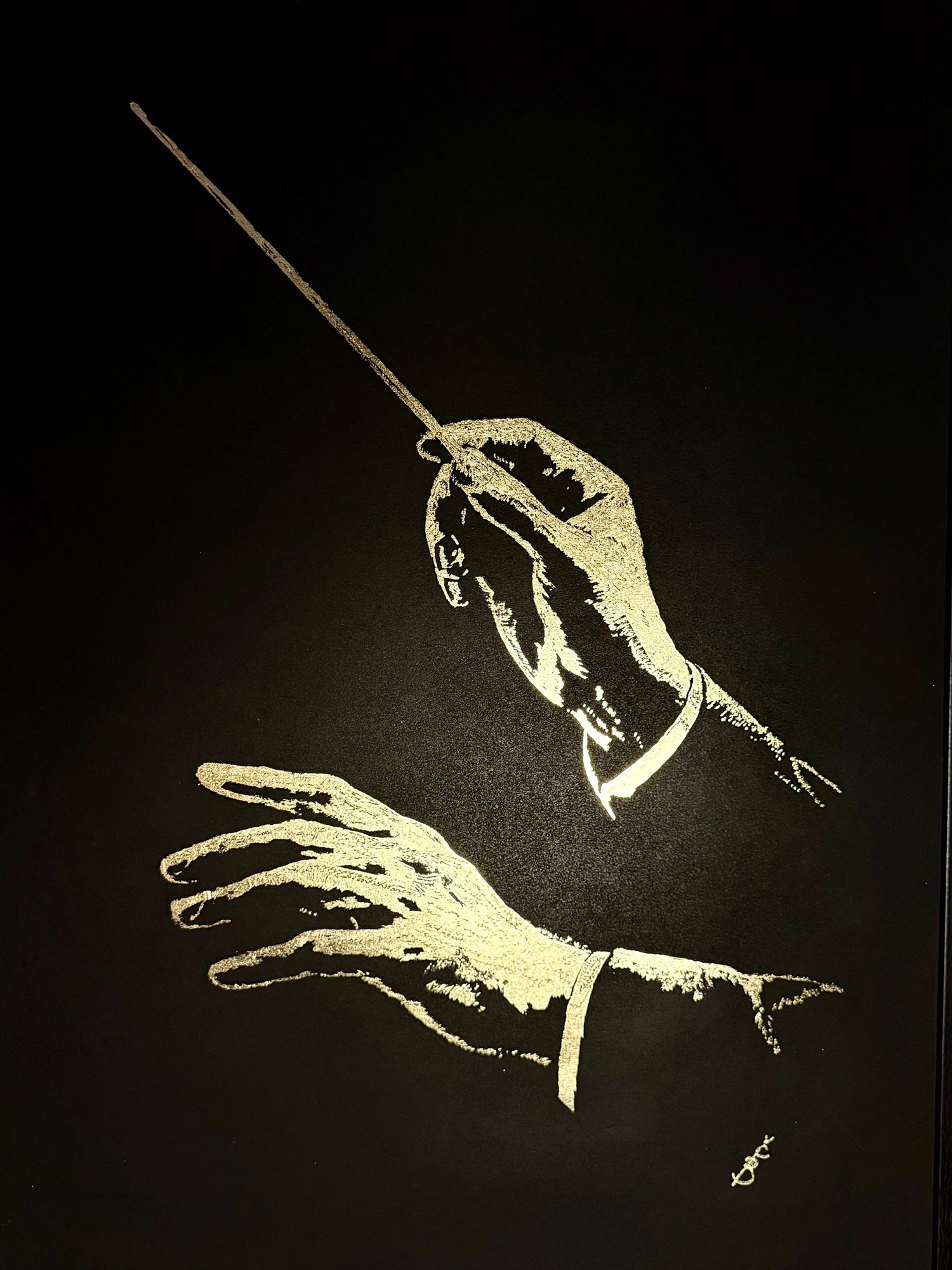 Step into a focused presentation of luminous gold on deep black. I work with the discipline of a materials scientist and the touch of a calligrapher. Visitors can watch concise gilding demos, study surface variations up close and preview new limited editions. Serious collectors and curators will find a clear, quiet space for conversation about process, conservation and commissions.